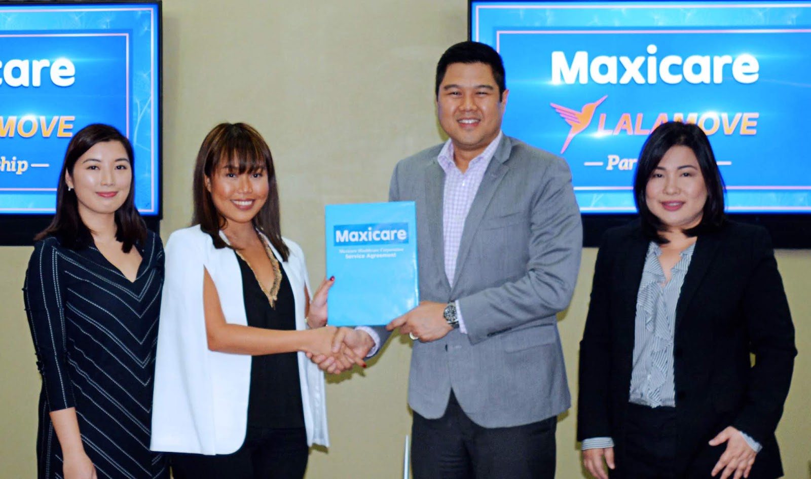 Partner drivers may avail of discounted Maxicare healthcare cards at Lalamove offices in Makati, Alabang, Quezon City, and Cebu. Photo shows (L-R) Lalamove strategic partnerships manager Akiko Sumulong, managing director Dannah Majarocon, together with Maxicare president and CEO Christian Argos, and chief consumer officer Rodelee Uy.